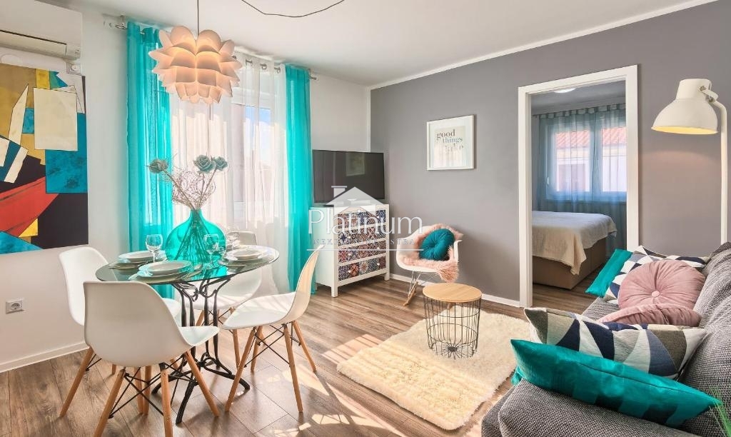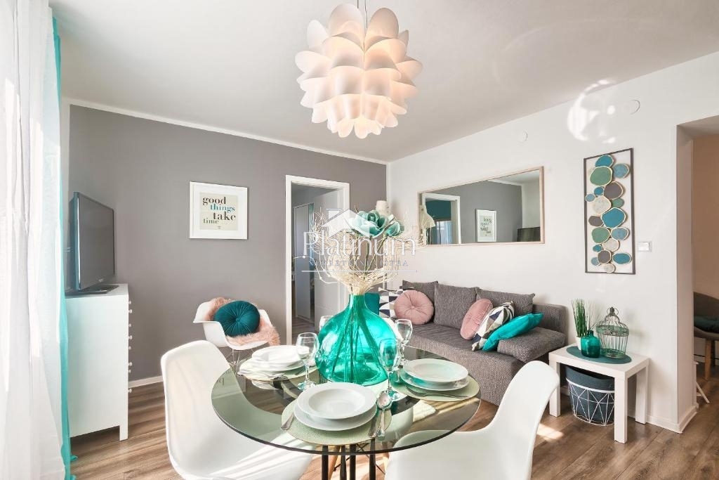 Opis: Prodaje se kompletno uređen i namješten stan površine 43,60 m2 . Sastoji se od dvije spavaće sobe, dnevnog boravka s kuhinjom i blagavaonom, kupaone, predsoblja i loggie. Parking mjesto ispred zgrade. Nalazi se nedaleko centra grada i svih sadržaja.