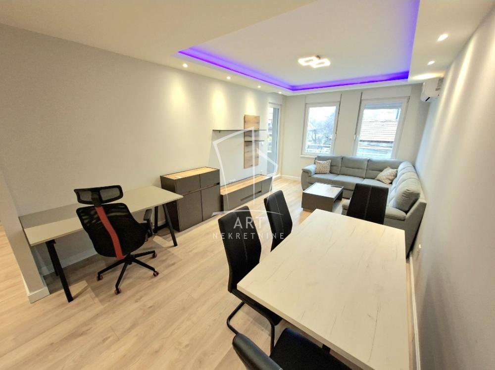 Opis: Izdaje se namešten stan u novogradnji u neposrednoj blizini Voždovačke crkve.Sastoji se iz ulaznog hodnika,velikog dnevnog boravaka sa kuhinjsko trpezarijskim delom,spavaće sobe,kupatila i terase.Mesečni troškovi niski,grejanje je podno i plaća se po potrošnji.Mikrolokacija izuzetna,bliznina svih sadržaja potrebnih za svakodnevni život.Dobra povezanost javnim prevozom sa svim delovima grada.Slobodan parking ispred zgrade.Kućni ljubimci dozvoljeni uz dupli depozit.
