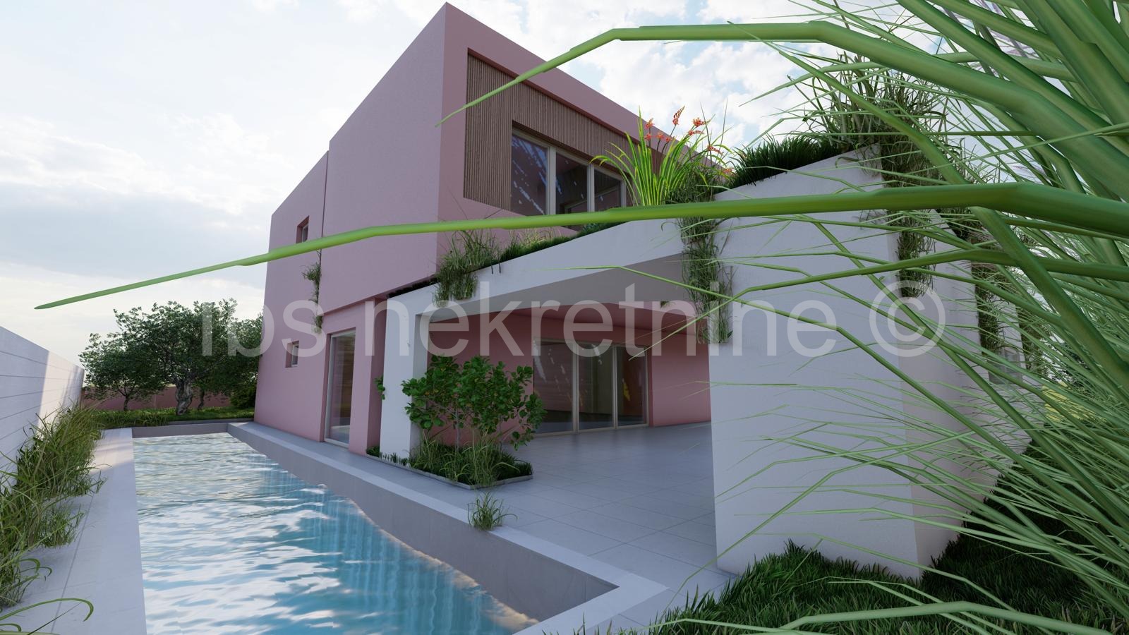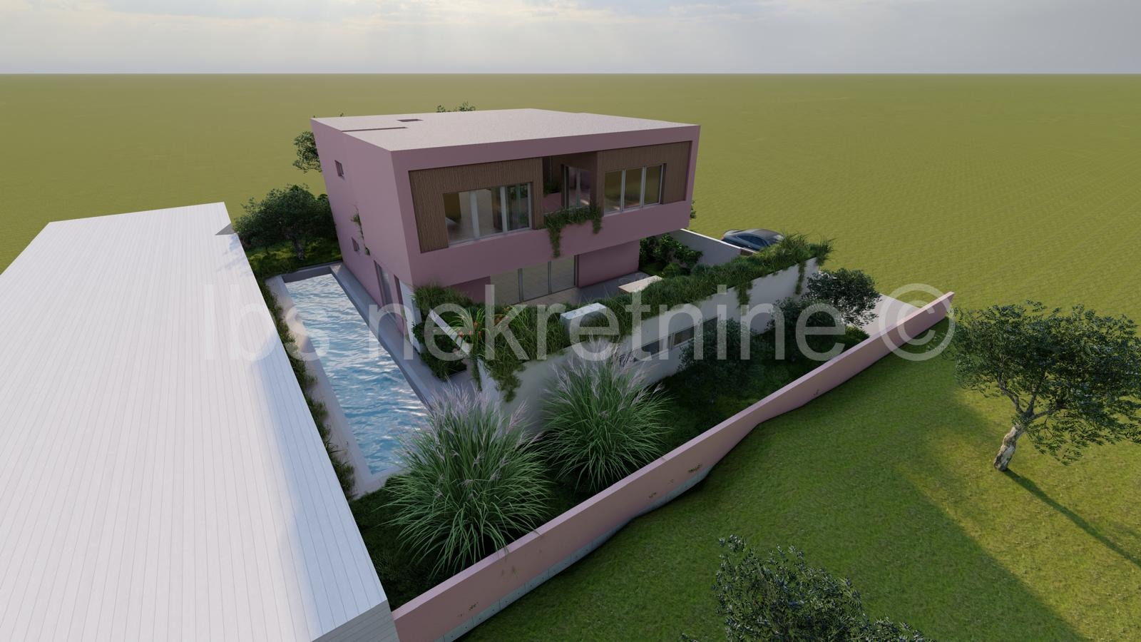 Opis: Na prodaju zemljište s građevinskom dozvolom moderne vile za odmor u Rogoznici, što omogućuje kupcu da odmah započne s gradnjom. Projekt obuhvaća luksuznu stambenu građevinu katnosti prizemlje + 1 kat s jednom prostranom stambenom jedinicom te pomoćnim objektom – otvorenim bazenom, idealnim za turistički najam ili privatni odmor. Vila je pažljivo pozicionirana na parceli kako bi pružila vizure i obilje prirodnog svjetla, čime se stvara savršen ugođaj za opuštanje. U prizemlju se nalazi stambena jedinica koja se proteže kroz dvije etaže, a sastoji se od hodnika, unutarnjeg stubišta, dnevnog boravka, kuhinje s blagovaonicom, kupaonice, spremišta, garderobe, loggie, strojarnice bazena, dvije natkrivene terase te ljetne kuhinje, uz koje je smješten i otvoreni bazen – idealan za cjelodnevno uživanje. Na prvi kat dolazi se unutarnjim stubištem, a na katu se nalaze radna soba, loggia 1, kupaonica 1, hodnik, praonica, kupaonica 2, spavaća soba 1, spavaća soba 2 te loggia 2, što omogućuje komforan smještaj gostiju ili obitelji. Građevina je završno oblikovana neprohodnim krovom s pristupom za servis i održavanje....
