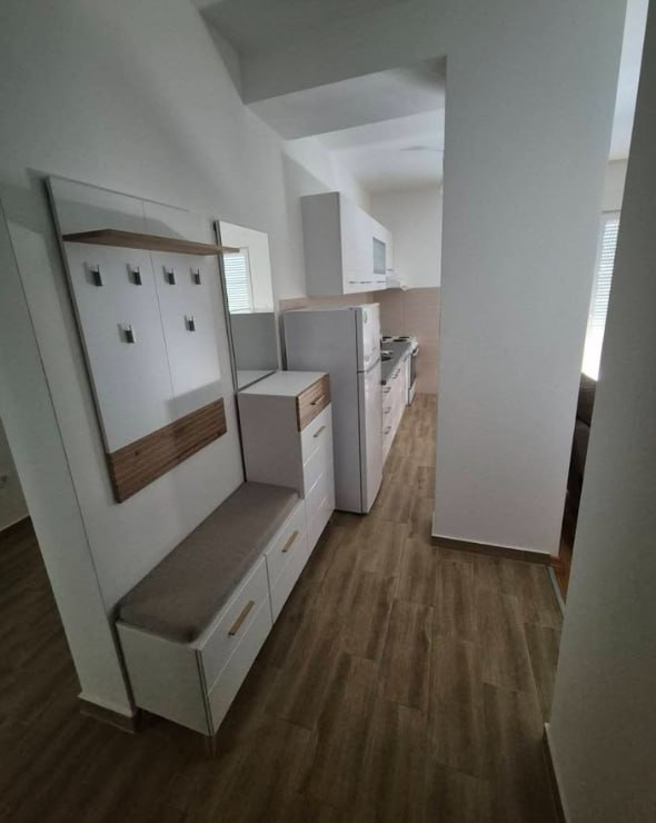 Ovaj prostrani stan od 81 m2 nalazi se na trećem katu nove, niskogradnje (bez lifta). Sadrži dvije spavaće sobe, dnevni boravak s kuhinjom i blagovaonicom, kupaonicu s prozorom i terasu. Stan je vrlo svijetao, ima mnogo prozora, namješten je i uključuje kućanske aparate. Parking je dostupan u blizini. Nalazi se u centru grada u ulici Đoke Kovačevića.