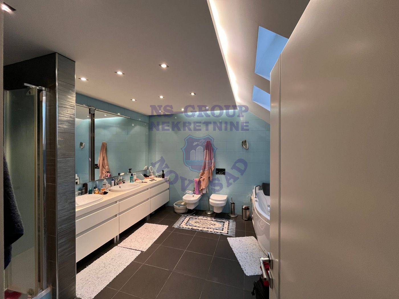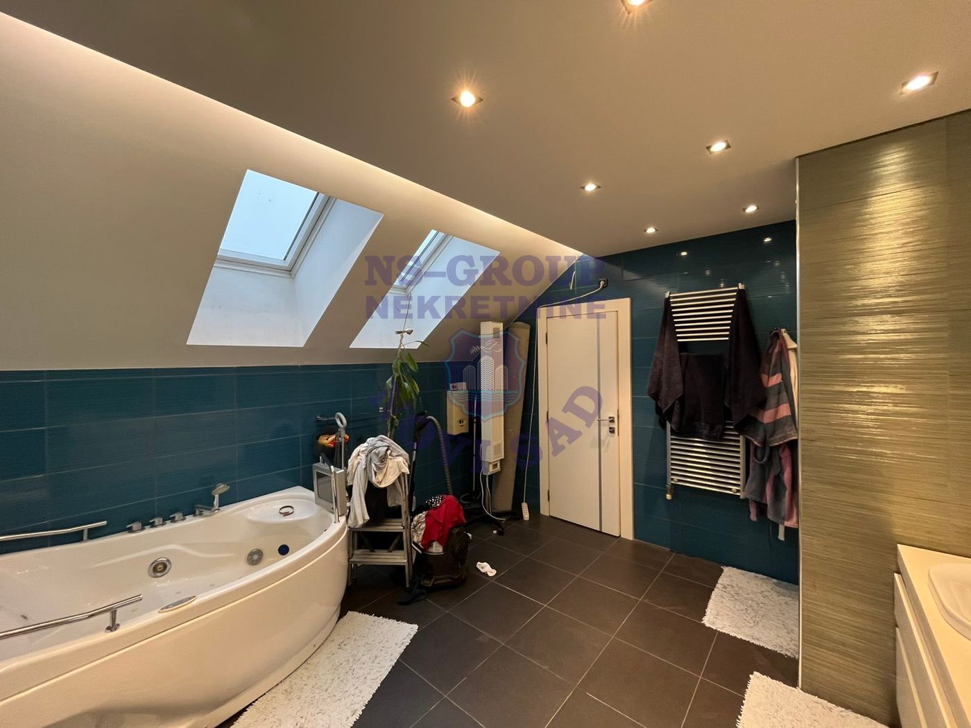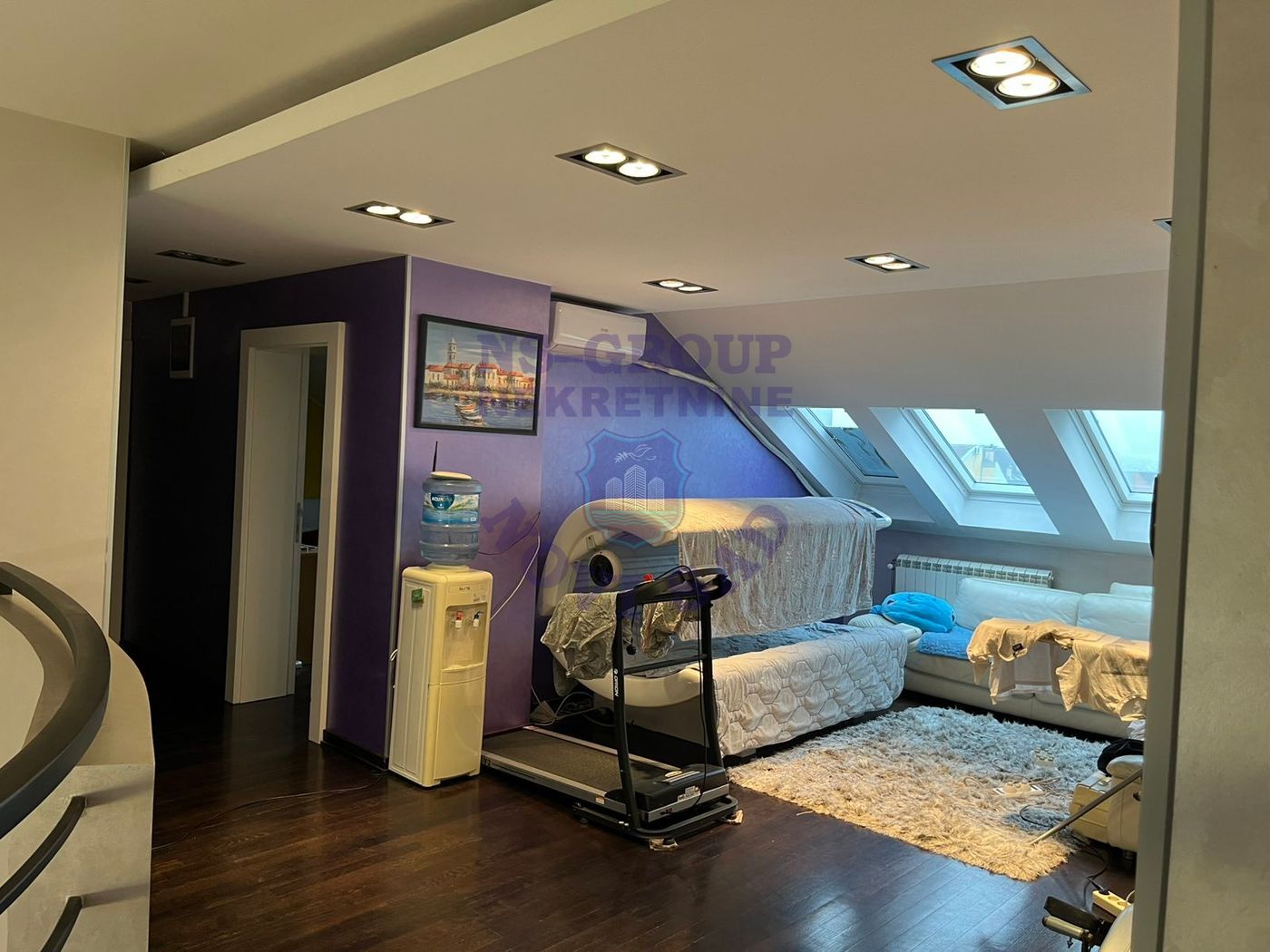 Opis: Nesvakidašnji, luksuzan stan u srcu Grbavice! Ovaj stan se opisuje sa rečima - luksuzno i komforno! Dva dnevna boravka, pet spavaćih soba, tri kupatila, tri terase, garderober... Na prvoj etaži dnevni boravak sa kuhinjom od 70m2, dve spavaće sobe, od kojih je jedna master soba, sa, malo je reći, komfornim komfornim kupatilom sa đakuzijem! Na gornjoj etaži koju krasi izuzetan galerijski hodnik iz kojih se ulazi u sve prostorije gornje etaže, nalaze se 3 spavaće sobe! Sve spavaće sobe izuzetno komforne! Stan u besprekornom stanju! U cenu uključeno po meri radjeni ugradni elementi, kao i dve prostrane garaže od 25m2 i 16m2! Za više informacija pozovite nas!