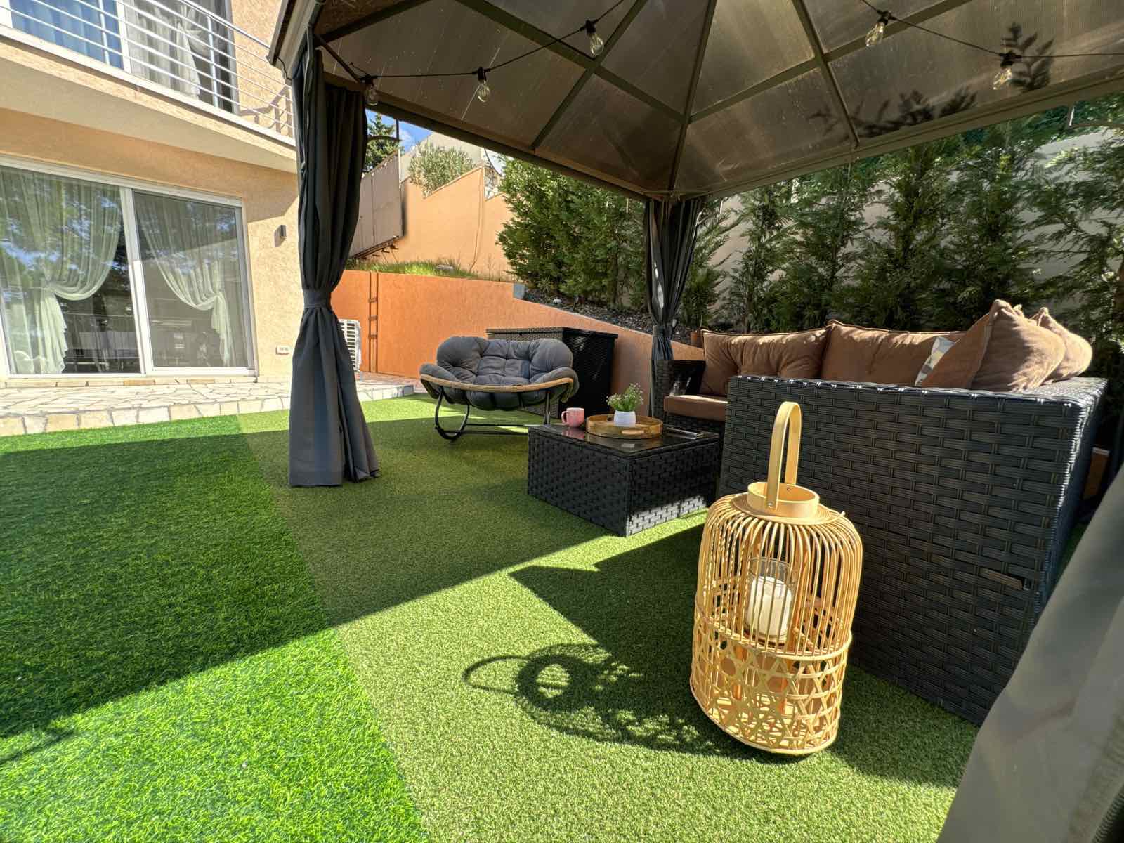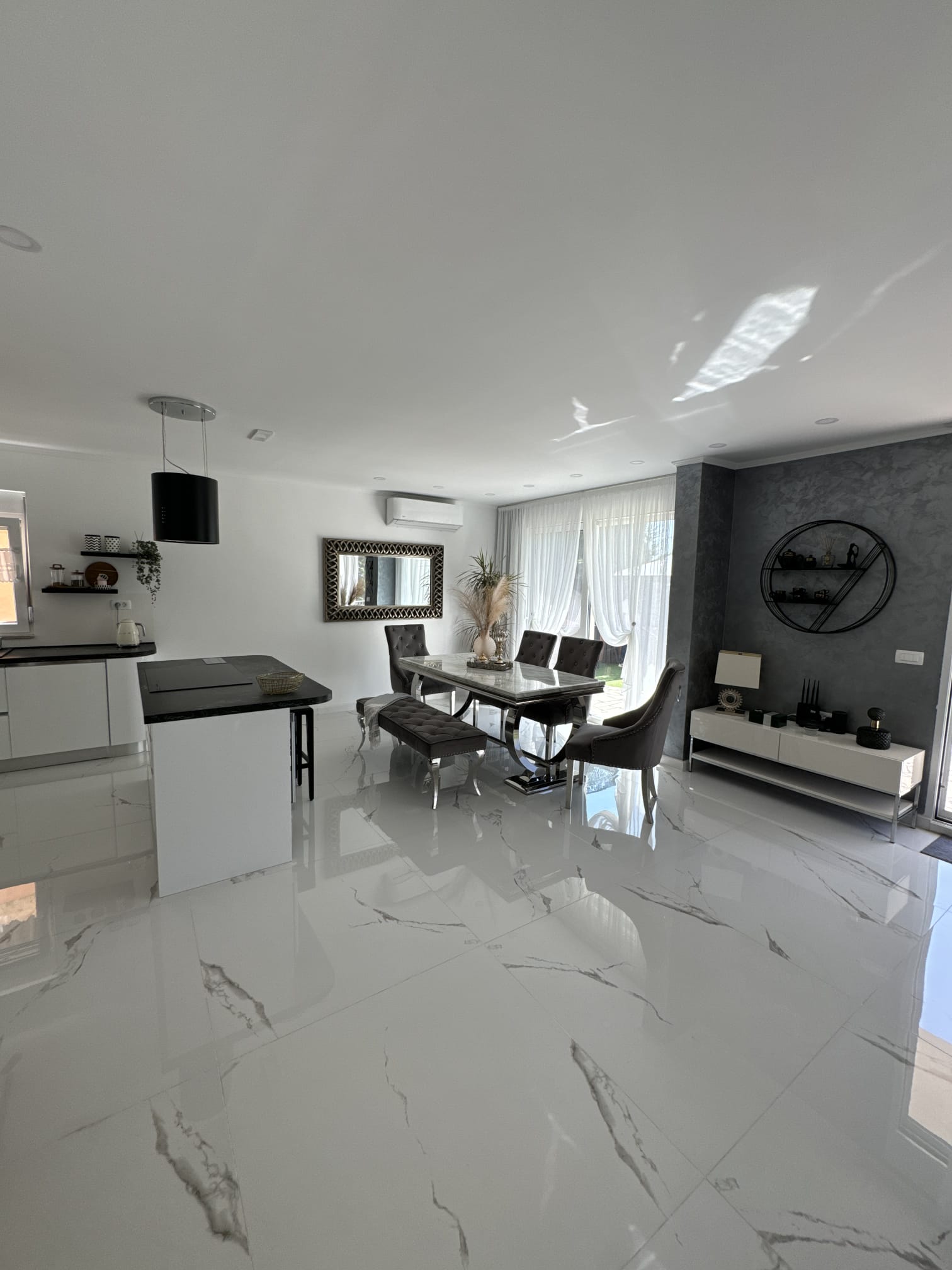 Kuća se prodaje kompletno namještena i opremljena Electrolux bijelom tehnikom. Kuhinja je prostrana i funkcionalna, vrhunskog kvaliteta kao i sav ostali namještaj u kući.
