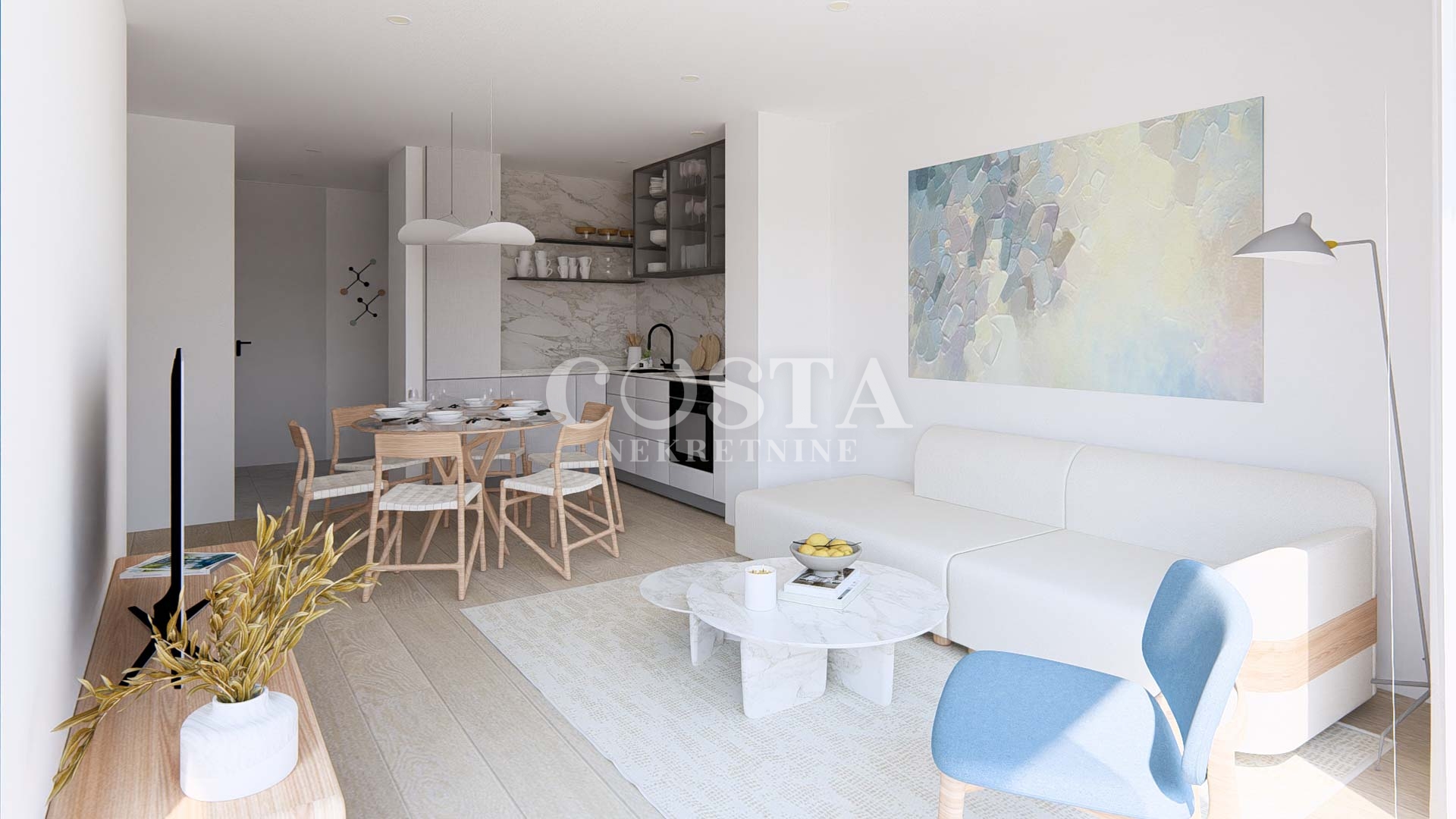 Opis: ZADAR, SUKOŠAN - Prostrani stan u izgradnji pokraj mora