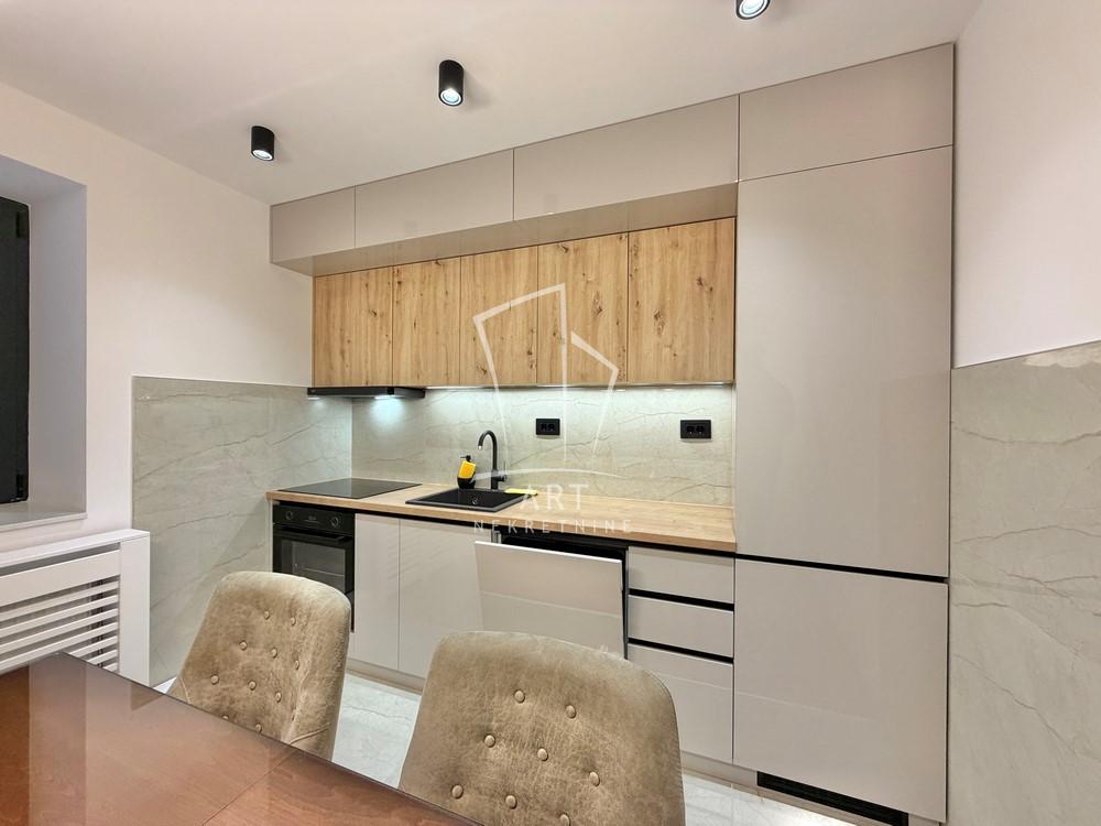 Potpuno je opremljena novim nameštajem, belom tehnikom, elektro roletnama.