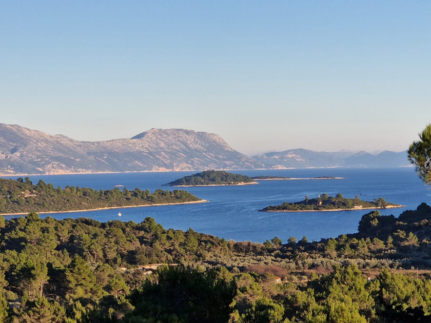 Sa zemljišta se pruža pogled na otvoreno more u daljini te na planinu Sv. Iliju.