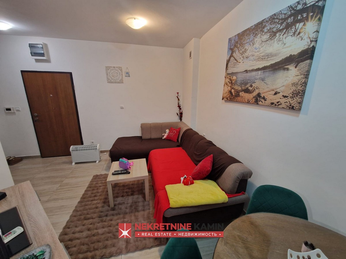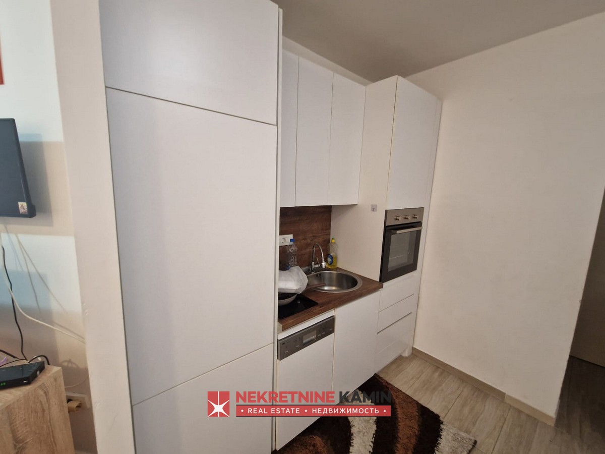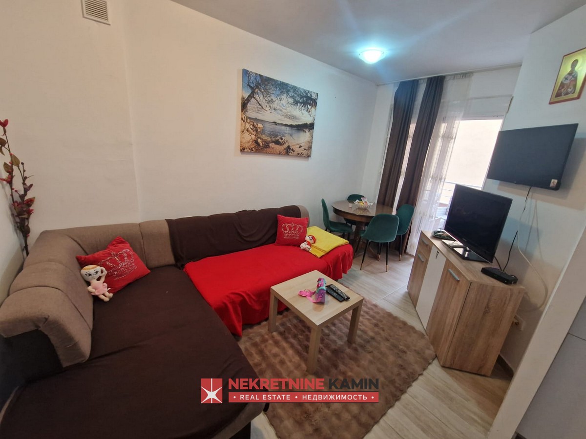 Rasporedjen je na dnevnu sobu sa kuhinjom, odvojenu spavaću sobu, kupatilo i terasu.