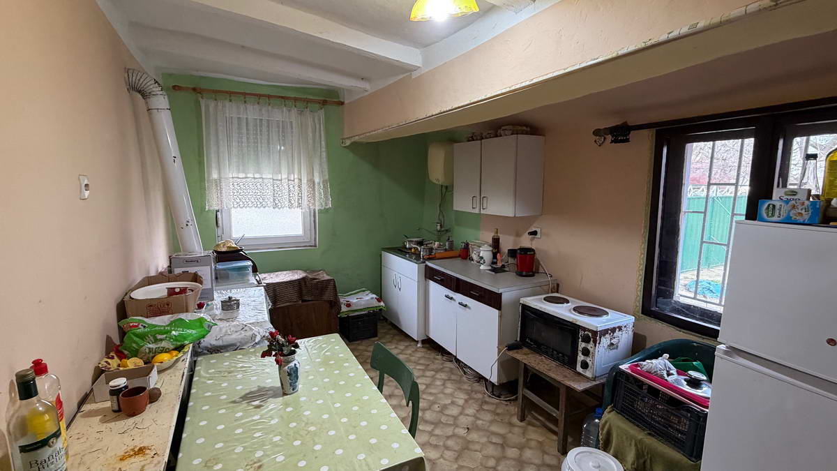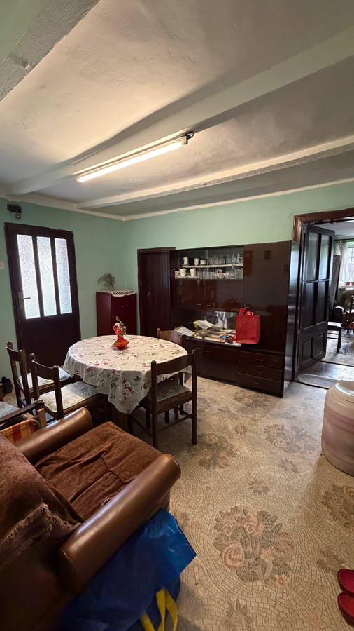 Opis: Pezlez - trosobna kuća površine 124m2 + pomoćne zgrade na placu površine 15 ara sa kolskim ulazom. Mešovit materijal, pvc stolarija, trofazna struja, grejanje na čvrsto gorivo, uknjižena 1/1.
