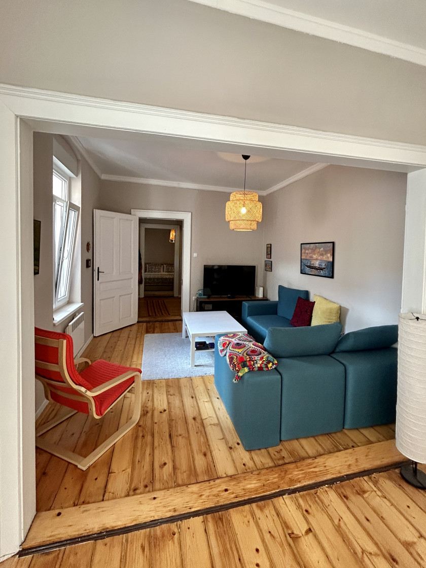 Stan se nalazi u dvorišnoj zgradi (ulaz iz zgrade koja je orijentisna ka ulici Bulevar oslobodjenja), na 1. spratu, jednostrano orijentisan, izuzetno svetao, po strukturi je trosoban- sastoji se od ulaznog hodnika, dnevnog boravka, odvojene trpezarije, kuhinje, spavaće sobe, ostave i kupatila, poseduje terasu od 23m2 i dva zasebna ulaza, grejanje na struju, klima.