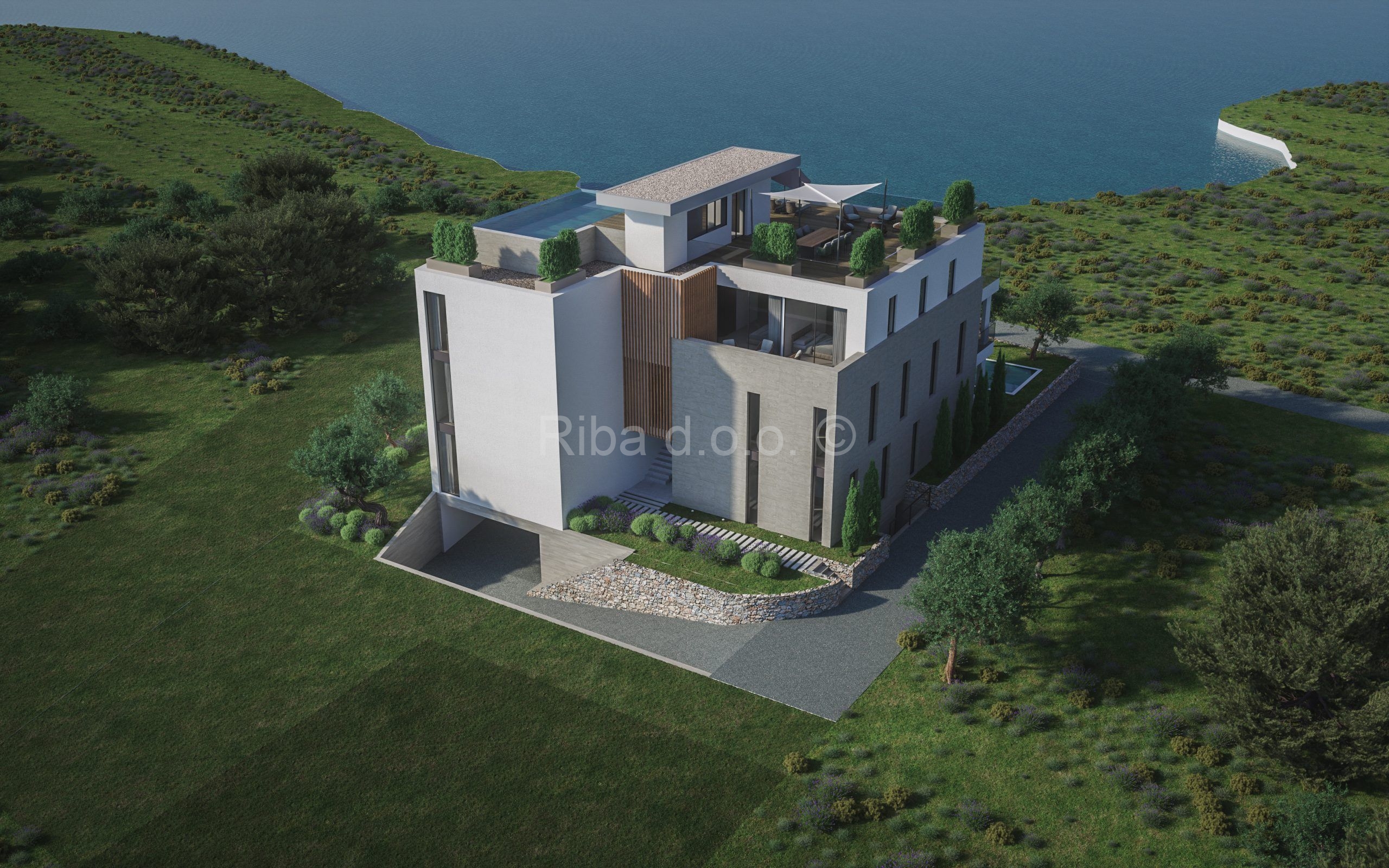 Apartman 3 sastoji se od ulaznog dijela, dnevnog boravka s blagovaonicom, kuhinje, tri spavaće sobe, dvije kupaonice, wc-a, hodnika i natkrivene terase na kojoj možete uživati ljeti. Uz stan idu dva garažna parkirna mjesta i ostava.