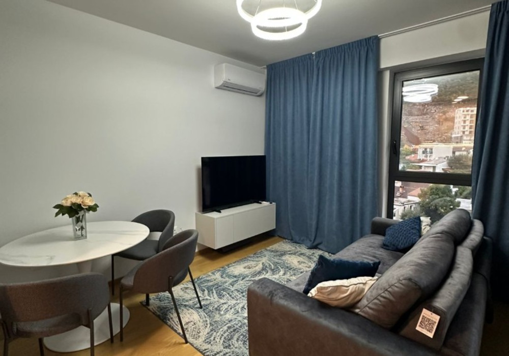 - living room with dining area, kitchen, one bedroom, terrace with city view, bathroom with shower and toilet...