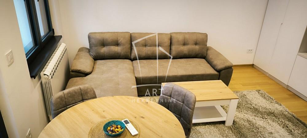 Opis: Izdaje se kompletno opremljen nov stan na Banovom Brdu, pored TC Ada Mol.