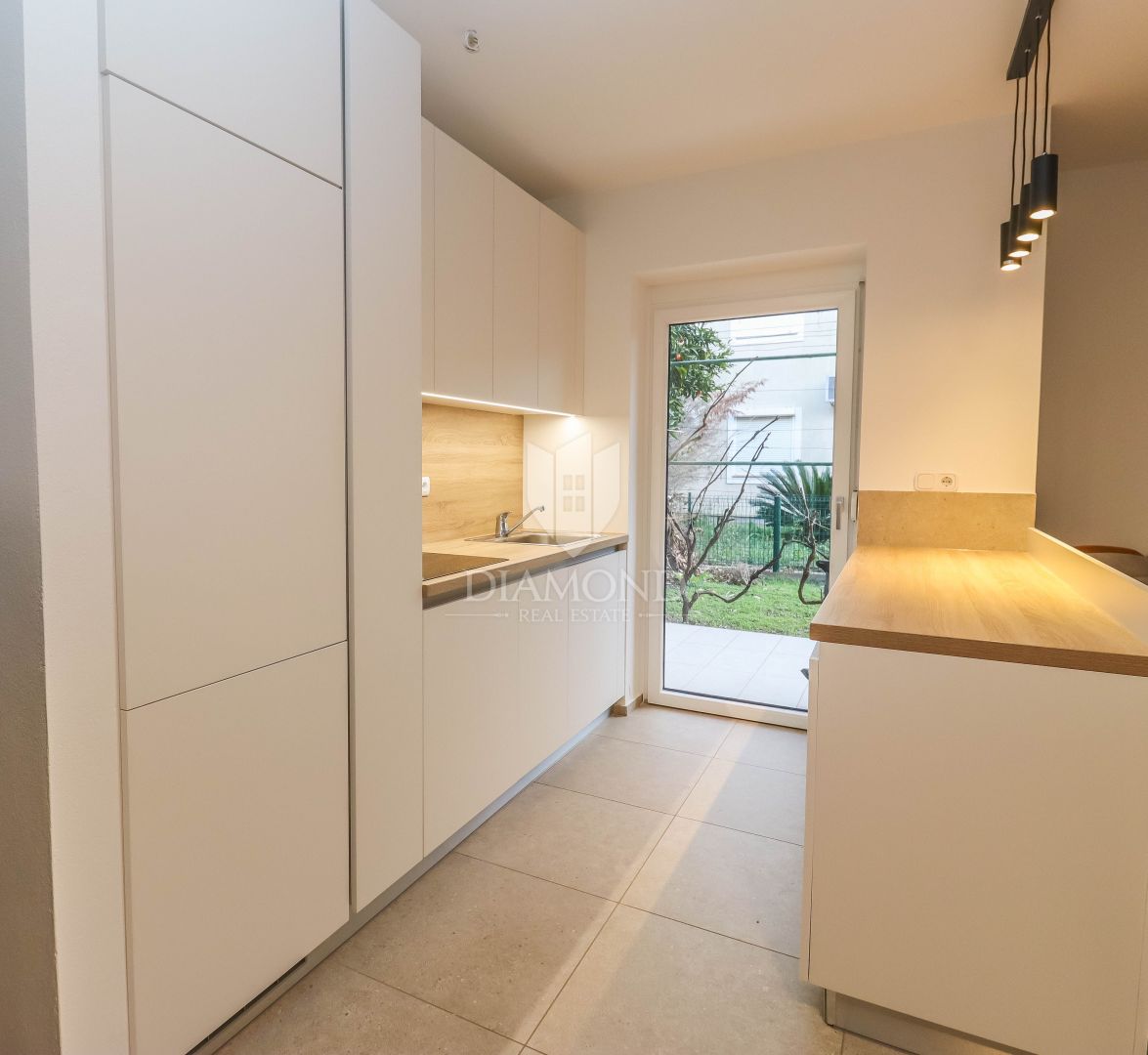 Stan se nalazi u prizemlju kvalitetno građene zgrade te je osmišljen s naglaskom na funkcionalnost i udobnost. Otvoreni koncept kuhinje, blagovaonice i dnevnog boravka stvara prozračan i svijetao prostor, savršen za svakodnevni boravak i druženja. Spavaća soba pruža mir i privatnost, dok je kupaonica moderno opremljena.