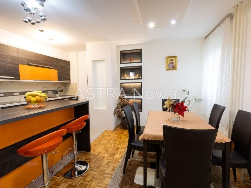Dnevni boravak, dve spavaće sobe, hodnik, kuhinja, trpezarija, kupatilo, zastakljen aterasa sa garniturom , otvorena terasa/bašta.