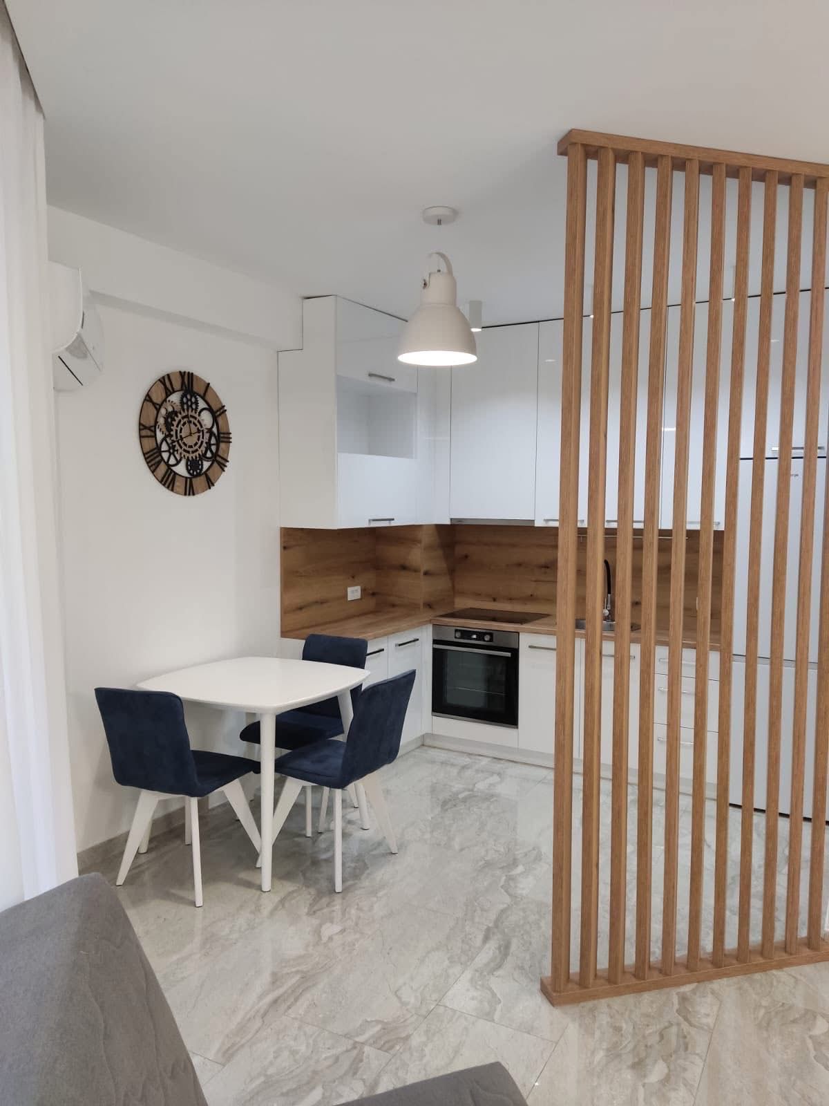 Apartman je idealno projektovan za maksimalnu funkcionalnost i komfor, sa otvorenim konceptom koji objedinjuje dnevni boravak, kuhinju i trpezariju, kao i moderno kupatilo. Veliki prozori omogućavaju obilje prirodne svjetlosti i prijatan ambijent tokom cijelog dana.