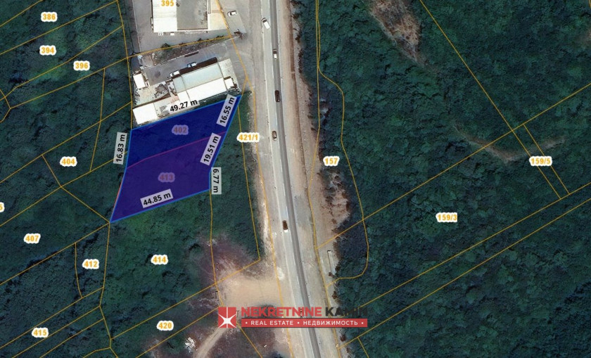 Plac je podijeljen u dvije urbanističke parcele površine 648m2 i 872m2 i ima prilaz sa glavne magistrale.