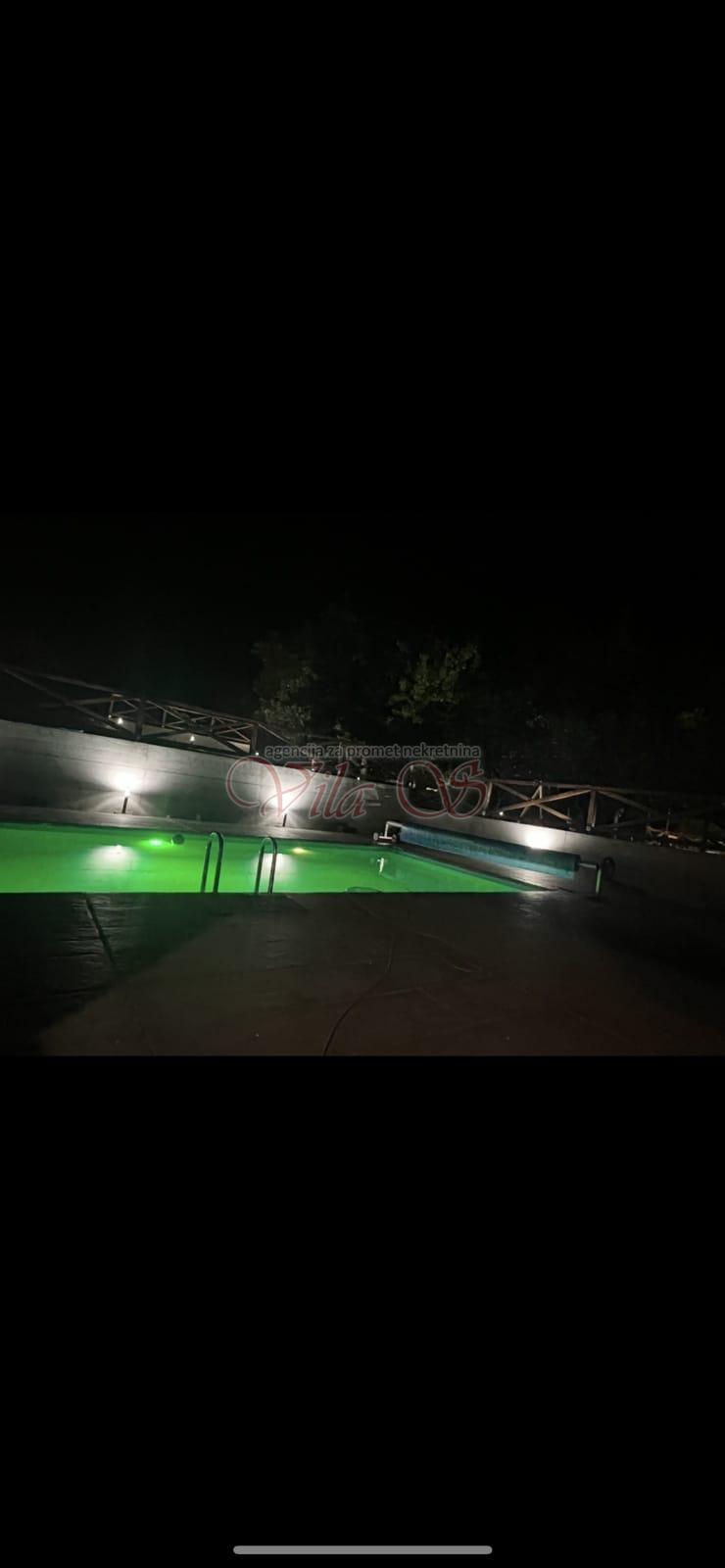 i kuhinja i sobica a u drugoj dve sobice hodnik i kupatilce. Ceo plac je12,2 ara i ogradjen je veštačkom travom.Lep veliki letnjikovac 4 x 3,5m. Zasadjeno puno raznih voćki groždja i slično.Na drugom delu placa pored bazena ( 7 sa 4,5 dubine 160cm ) je drugi letnjikovac sa šankom predvidjen za uživanje.Tu je i mali teren za basket. Ispred placa i u samom dvorištu puno prostora za više automobila. Ceo plac je pod video nadzorom i alarmom.Posadjena trava na celom placu, uradjena nova pumpa u bunaru sa komplet novom instalacijom i drvenim delom iznad bunara. Plac poseduje roštilj, kotlić, tuš pored bazena. Robot za čišćenje bazena.ležaljke, šank stolice, garniture drvene i još dosta toga ostaje na placu. Za ozbiljne kupce mogu poslati jos slika i video snimak kako to sve izgleda. Može zamena za dva manja ili jedan veći stan u Beogradu.