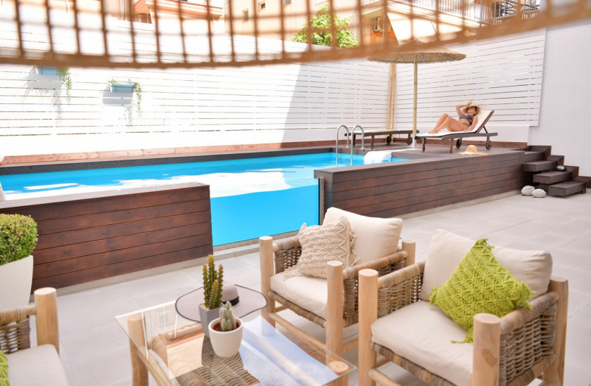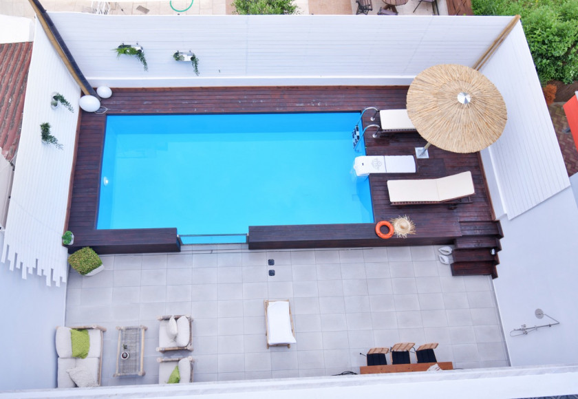 Luksuzni bazen sa ležaljkama i prelepim odvojenim delom za sedenje, za opuštanje.