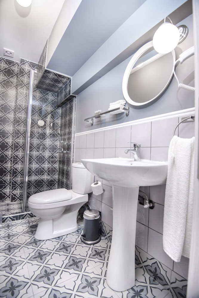 Sve u kupatilu italijansko, šolja , lavabo, ogledalo sa ormarićem, tuš po meri sa jednim staklom.