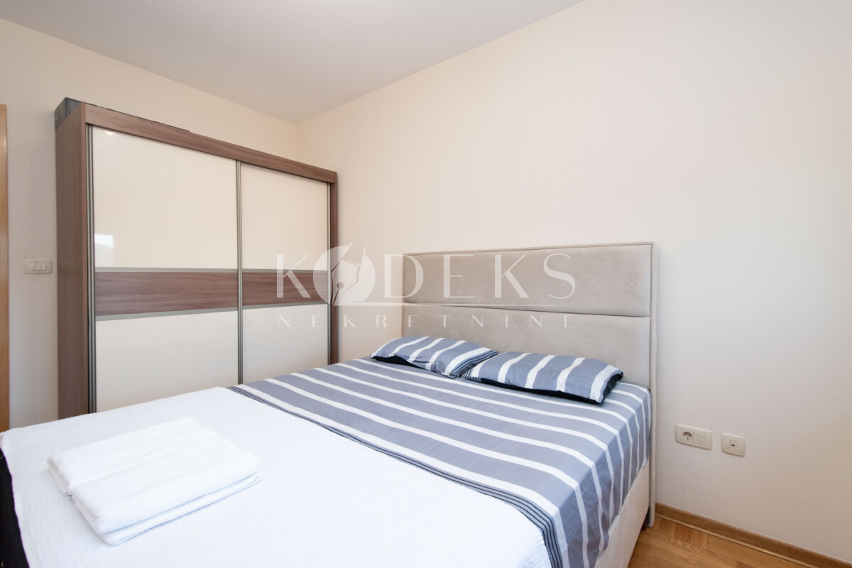 Opis: Izdaje se lijepo namješten jednosoban stan smješten na trećem spratu stambene Zetagradnje u naselju Preko Morače.