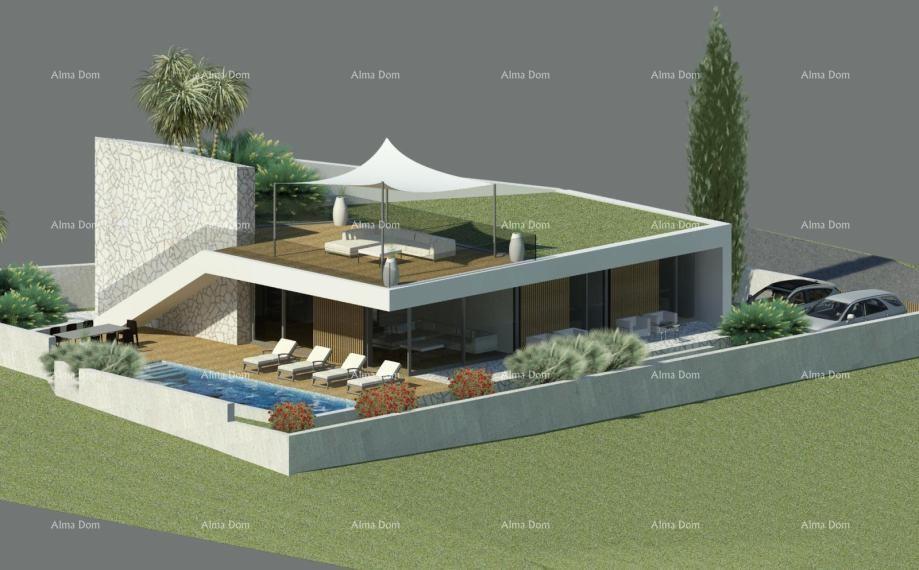 Opis: Moderna prizemnica s bazenom i krovnom terasom s pogledom na more