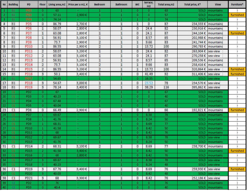 Trenutnu listu dostupnih stanova sa površinama i cenama pogledajte u sledećem dokumentu: