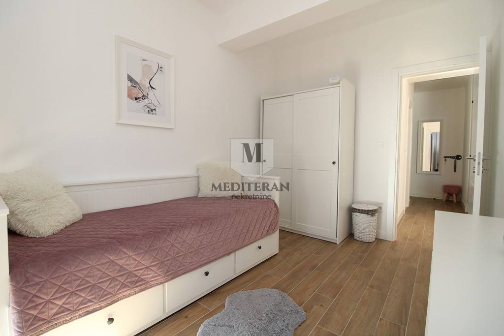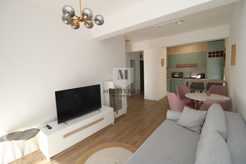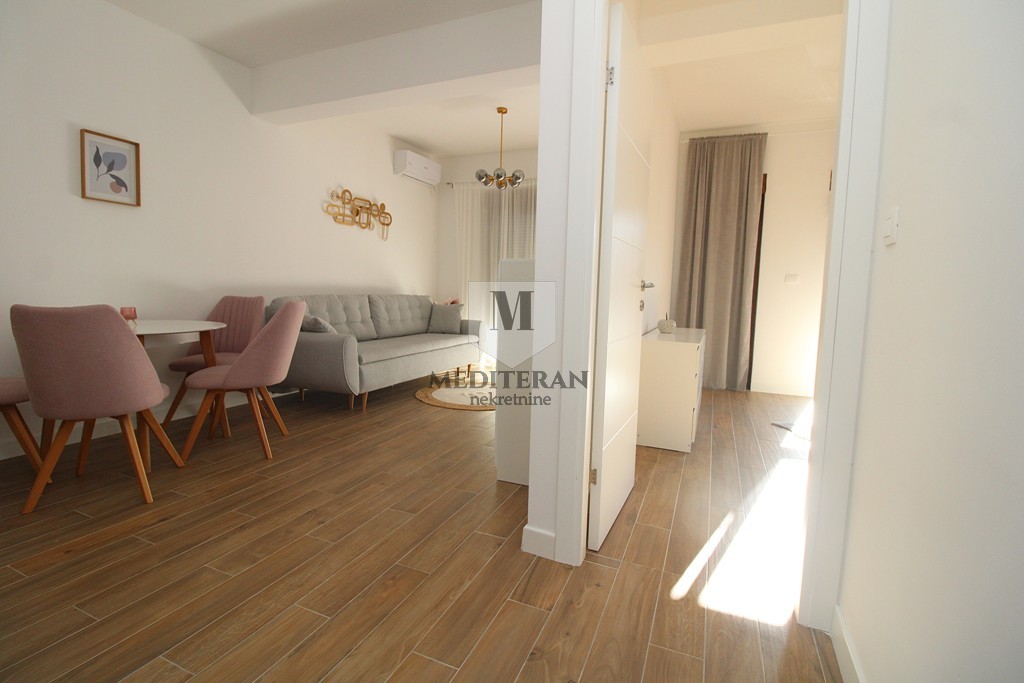 Smješten je u novoizgrađenoj stambenoj zgradi kvalitetne gradnje građenoj po savremenim standardima.Moderno je opremljen namještajem visokog kvaliteta rađenim po mjeri.