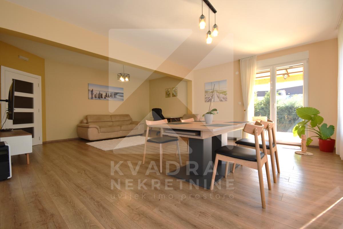 Struktura: ulazni hodnik, dnevni boravak, kuhinja, trpezarija, tri spavaće sobe, kupatilo, toalet, garaža i terasa.