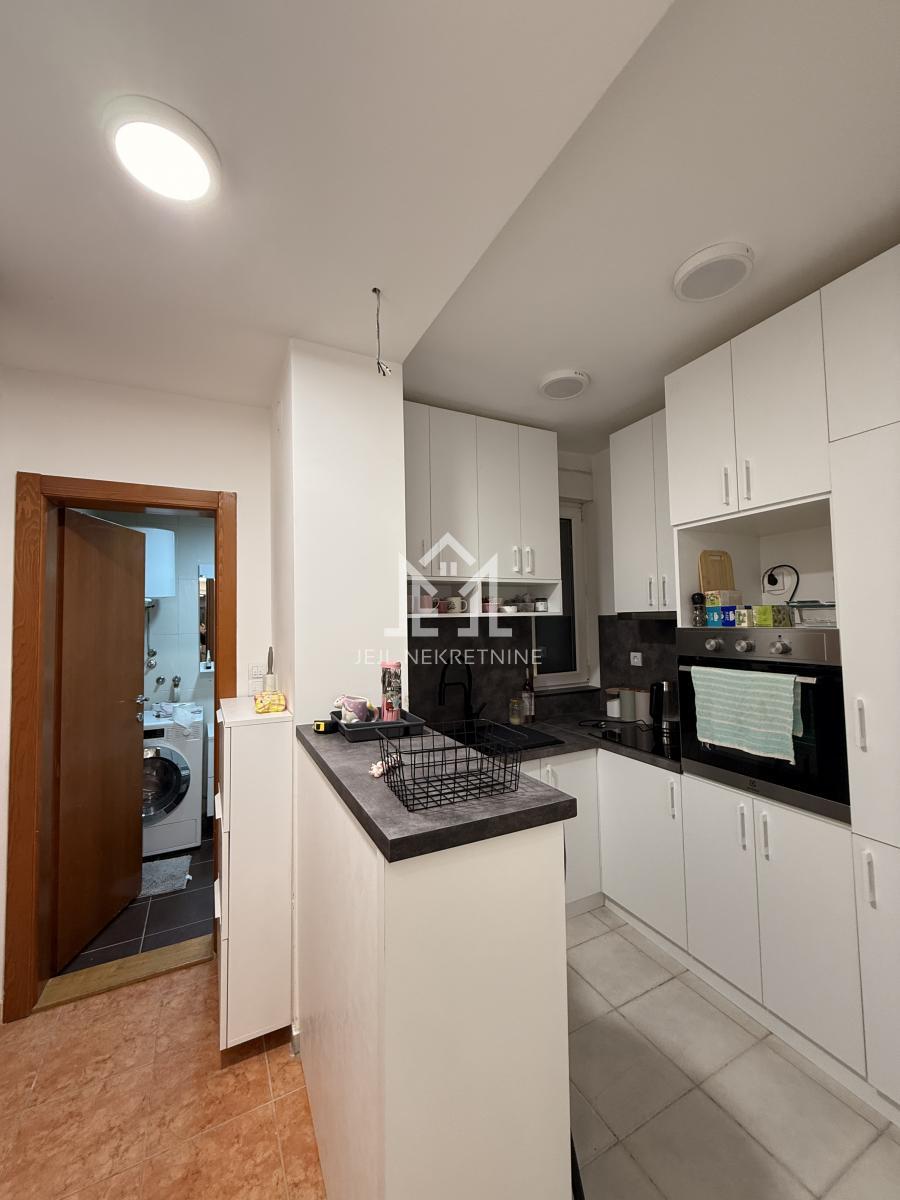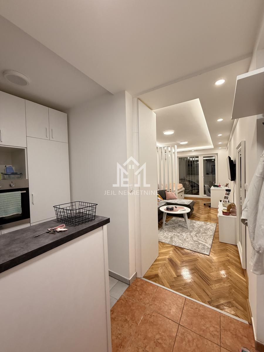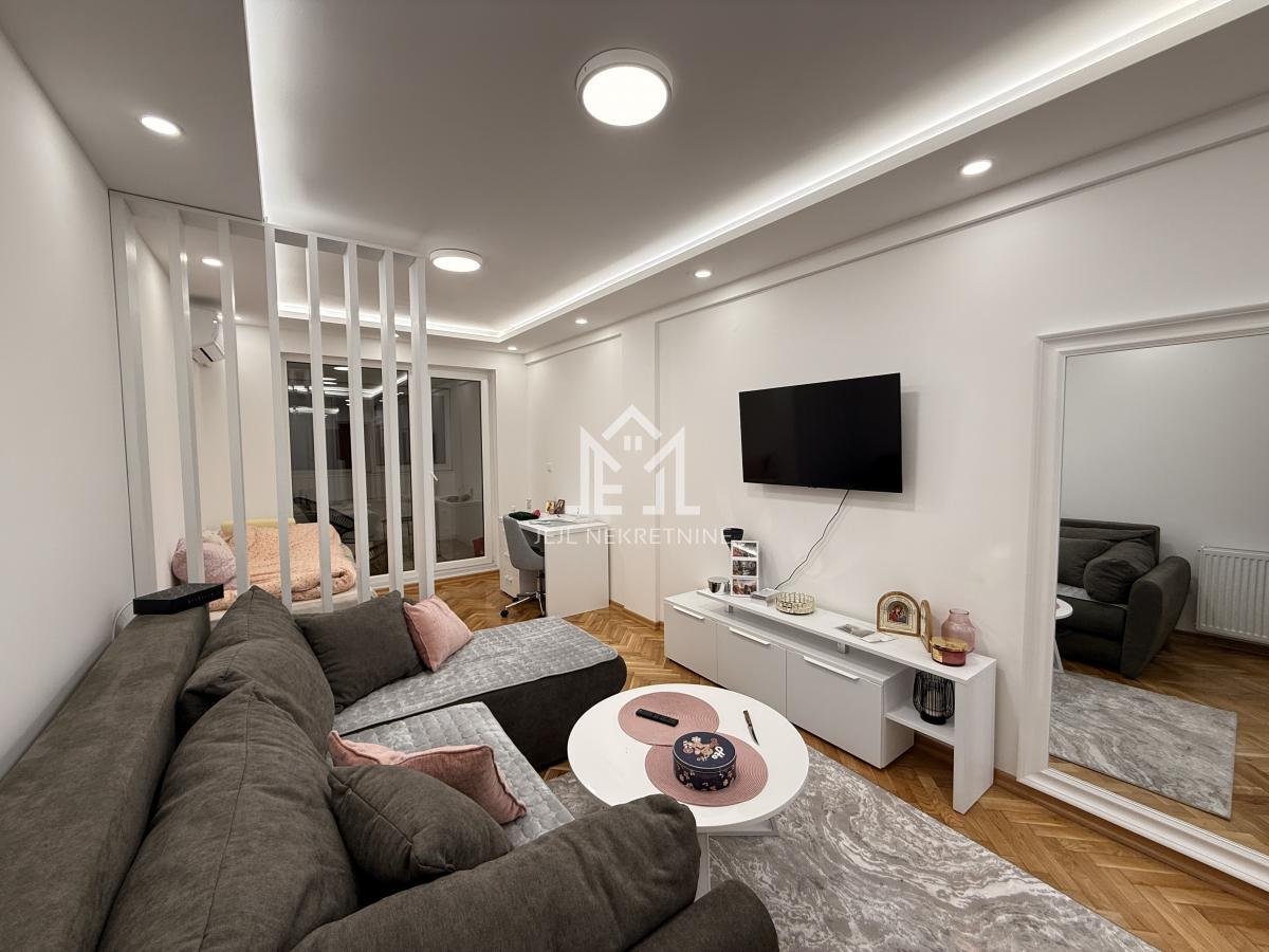 Ulaskom u stan, sa leve strane nalazi se kupatilo, pravo se ulazi u kuhinju, dok se sa desne strane nalazi jedna velika, otvorena prostorija koja čini dnevni boravak. Dnevni boravak je moderno uređen, svetao i izuzetno prijatan za boravak. Opremljen je komfornom ugaonom garniturom, klub-stolom i TV komodom sa zidno montiranim televizorom. Prostor je dodatno oplemenjen spuštenim plafonom sa diskretnom LED rasvetom, koja naglašava savremen dizajn enterijera i daje prostoru sofisticiran, ali topao ambijent.