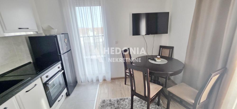 Opis: U centralnom delu Srbije, na obroncima planine Goč, nalazi se Vrnjačka banja, razvijena turistička destinacija. Veoma je popularna kako kod domaćih, tako i stranih turista koji žele da se relaksiraju, odmore i opuste. U neposrednoj blizini akva parka “Raj”, kao i svih ostalih neophodnih sadržaja za ugodno i lagodno stanovanje, nalazi se ovaj luksuzan jednosoban stan. Sastoji se od: dnevno-kuhinjsko-trpezarijskog dela, kupatila i velike lepe terase. Prodaje se kompletno namešten i opremljen. Obezbeđen parking sa rampom za stanare zgrade. Useljiv!